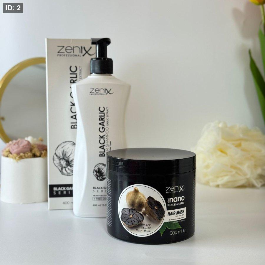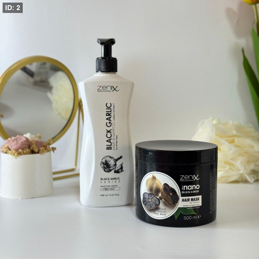 نأخذ كمية كافية من الشامبو، ومن ثم نبدأ بتطبيقها على شعر رطب بحركات مساج، انتظر لمدة من 2-3 دقائق، وبالتالي فإن المواد الموجودة في مستخلص الثوم الأسود سوف تخترق فروة الرأس وتتعمق بها، ومن ثم نشطف الشعر بالماء الوافر. بعد غسل الشعر بشامبو الثوم الأسود يتم تطبيق كمية من ماسك الثوم الأسود على الشعر المبلل لحين انتشاره بكافة أنحاء الشعر والتأكد من وصوله الى كافة نهاية أطراف الشعر، بعد الانتظار لمدة دقيقتين يغسل الشعر بالماء الوافر. ينصح باستخدامه مرة واحدة بعد استخدام شامبو الثوم الأسود