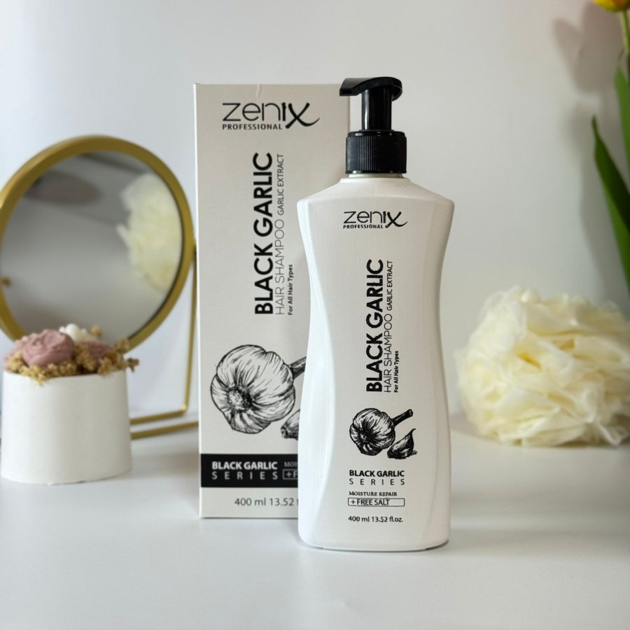 نأخذ كمية كافية من الشامبو، ومن ثم نبدأ بتطبيقها على شعر رطب بحركات مساج، انتظر لمدة من 2-3 دقائق، وبالتالي فإن المواد الموجودة في مستخلص الثوم الأسود سوف تخترق فروة الرأس وتتعمق بها، ومن ثم نشطف الشعر بالماء الوافر.